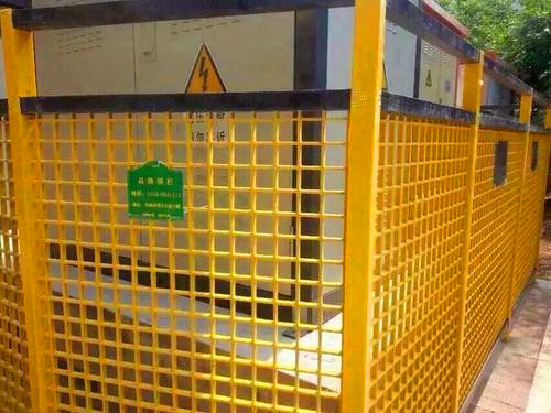 市場上廠家的玻璃鋼格柵護欄是由拉擠型材類產品作為支撐架,玻璃鋼材質的網格板作為護欄的防護面。該類護欄與工業生產中使用的玻璃鋼護欄不同,在工業生產中,所使用的護欄都是有拉擠型材組成的。前者的優點是防護效果更好,一般用來保護電氣設備,下面是一些玻璃鋼格柵護欄安裝示例圖展示。