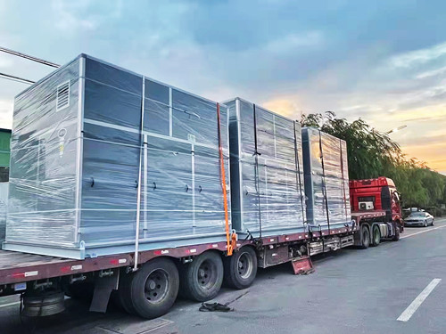 今天本公司有三臺大型裝有隔音箱的玻璃鋼風機發往貴州某工地,因為風機的使用區域對于噪音有嚴格的要求,所以在風機上加裝了隔音箱。