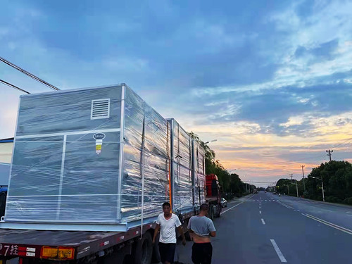 三臺大型裝有隔音箱的玻璃鋼風機發往貴州