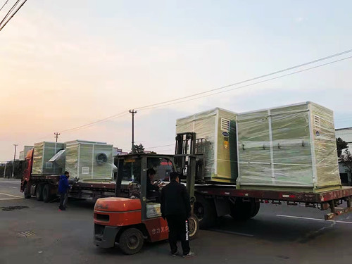 7臺裝有隔音箱的玻璃鋼離心風機發往河北石家莊