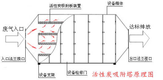 玻璃鋼活性炭吸附塔的工作原理(上圖):